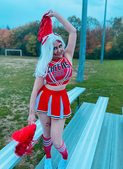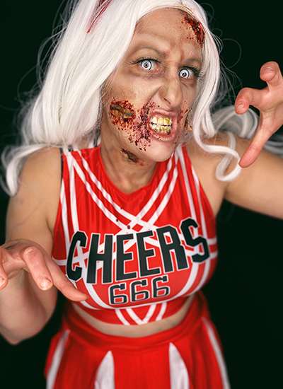 And that my ghouls, is all the inspiration we needed to make this zombie cheerleader look rise from the grave. My undead transformation was made by Blood, Sweat and Lipstick with love, liquid latex, and special effects magic. Thanks to this awesome collab, we both have some killer content to share this Halloween. If you own a creative brand, now is the perfect time to get inspired and create some killer content.